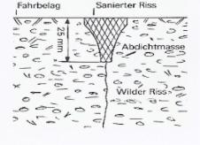 3. Vergiessen der Risse mit polymervergüteter Bitumenvergußmasse.