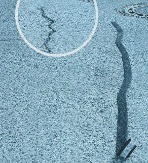 2. Vergiessen der Risse mit polymermodifizierter Bitumenemulsion.